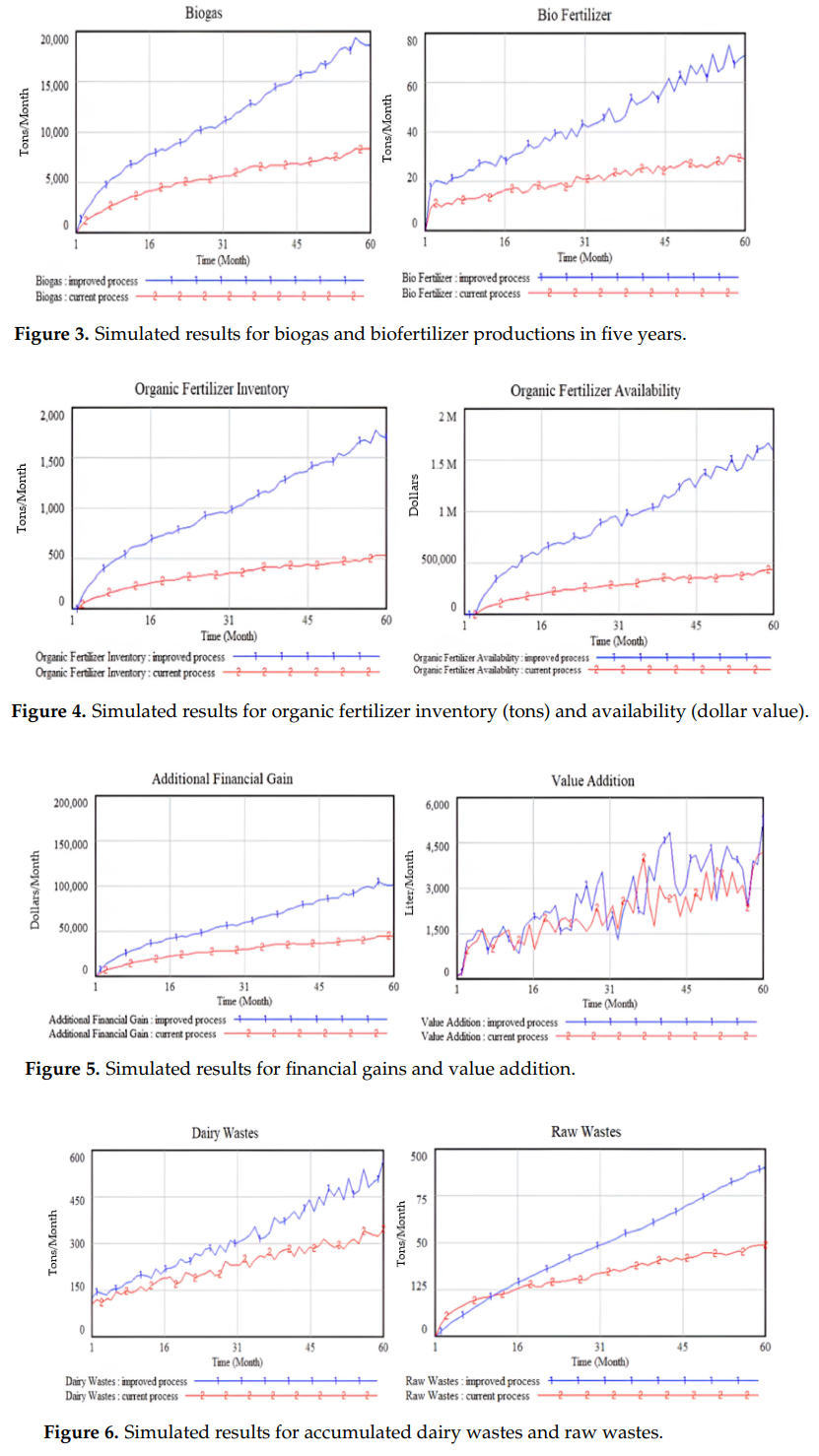 Since the entire quantitative comparison between the “current” and “improved” processes (Figures 3–6), including the dramatic projections for biofertilizer production and financial gains, hinges on this model, this error invalidates the paper’s primary evidence. The impressive graphs are likely artifacts of a broken model rather than valid projections of a sustainable approach.
